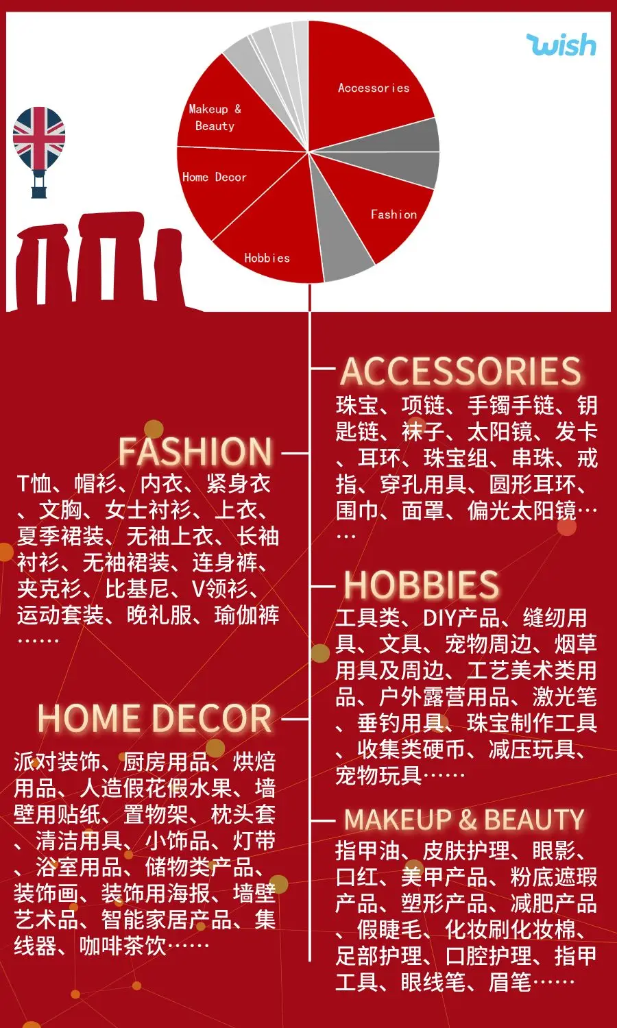 2020年开始啦!小编已经闻到了春天的味道~北半球准备迎接春天,南半球将要进入秋冬,这个春天(北半球的~~)又有哪些不同?潘通年度色彩是经典蓝,大面积印花的时尚风潮好像又吹回来了……时尚果然是个圈,每个设计都有自己的春天~时尚在轮回,每年2月至4月,Wish平台上的热销产品也在循环,几个主要国家(或地区)市场上的热销产品都那么地相似。纵观2019年春季的全球市场,配件配饰、时尚服装、家居用品、美妆个护、兴趣爱好、3C电子依然是销量最多的品类,而对于美国、德国、法国、英国、巴西等几个重要的Wish市场,热卖产品的默契度相当高!尤其是美国、德国、法国、英国四个国家,各个重点品类中的热卖品类几乎完全相同。在配件配饰品类中,珠宝、项链、手镯、耳环、袜子、太阳镜等是所有主要国家市场中销售量最多的产品,没有例外。而2019年2月至4月,美国市场上的配件配饰类产品的销量占到总销量的1/4以上,2020年的春天,配件类产品是否还会这么火爆?包括美国、法国、德国、英国在内的美欧主要国家,内衣及春夏装都是2019年春季的热销品类;同时,家居家装类产品也是春季的热门品类:派对装饰、墙壁装饰、人造假花等产品都是几个主要国家春季的热销产品;美妆个护产品属于无明显季节性的日用品,眼影、唇膏、假睫毛、粉饼遮瑕、指甲油……这些常用的产品依然是2020年春季的潜在热卖品类。